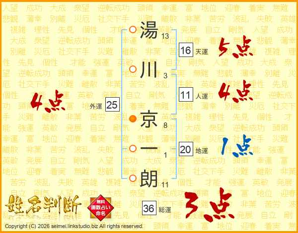 湯川京一朗さんの総運は36画の3点!