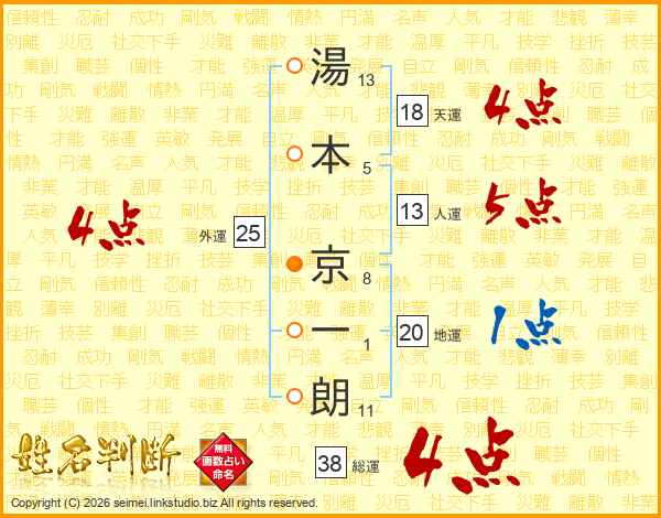 湯本京一朗さんの人運は13画の5点!