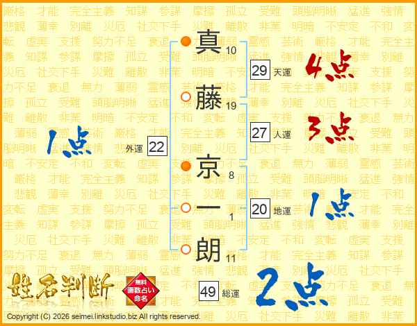真藤京一朗さんの総運は49画の2点!