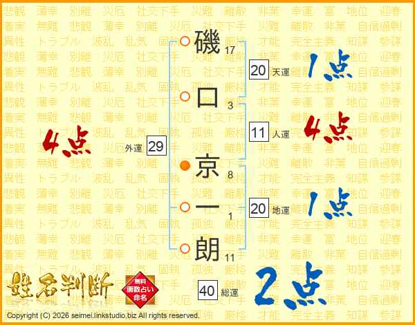 磯口京一朗さんの人運は11画の4点!