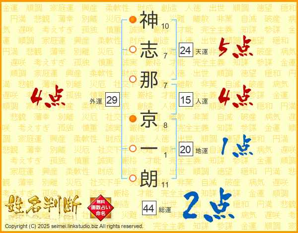 神志那京一朗さんの総運は44画の2点!