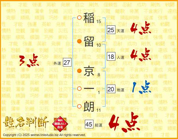 稲留京一朗さんの天運は25画の4点!