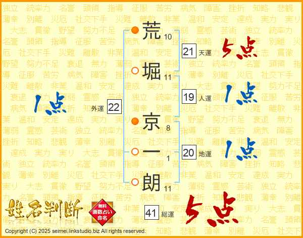 荒堀京一朗さんの天運は21画の5点!