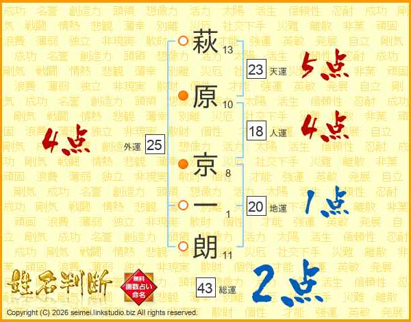 萩原京一朗さんの総運は43画の2点!
