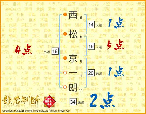 西(6画)松(8画) 京(8画)一(1画)朗(11画)