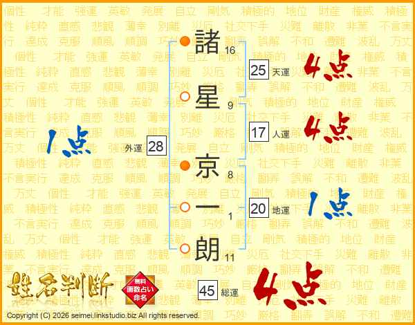諸(16画)星(9画) 京(8画)一(1画)朗(11画)