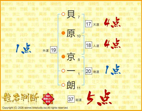 貝原京一朗さんの総運は37画の5点!
