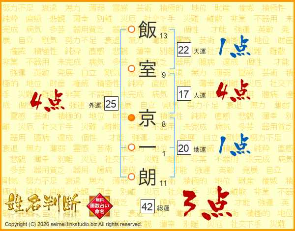 飯室京一朗さんの総運は42画の3点!