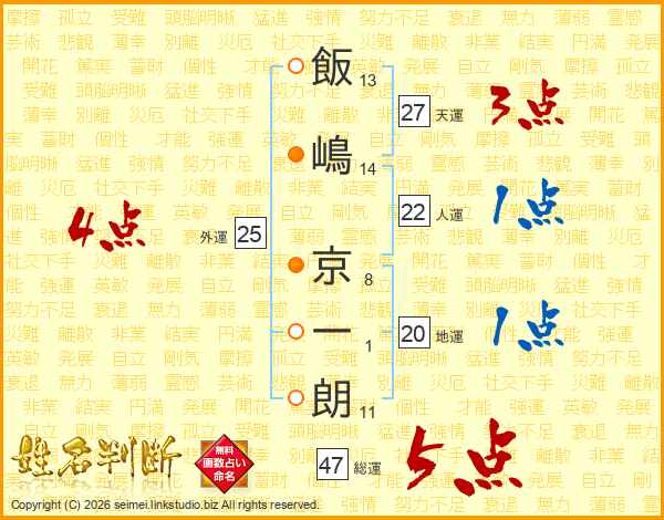 飯嶋京一朗さんの総運は47画の5点!
