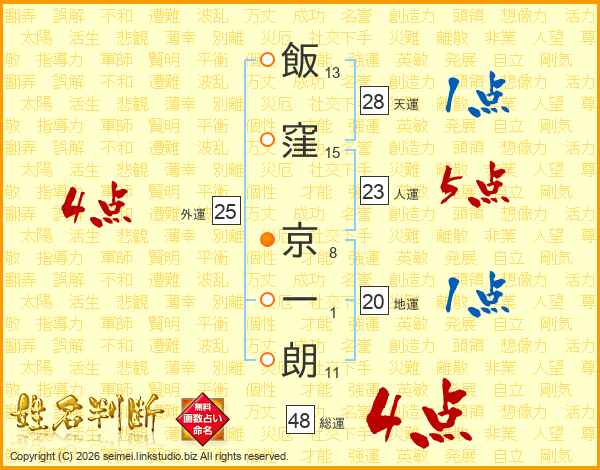 飯窪京一朗さんの総運は48画の4点!