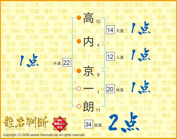 高内京一朗さんの天運は14画の1点!