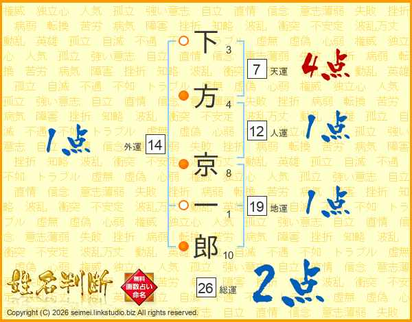 下方京一郎さんの総運は26画の2点!