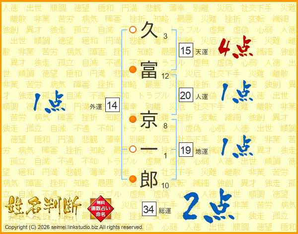 久富京一郎さんの総運は34画の2点!