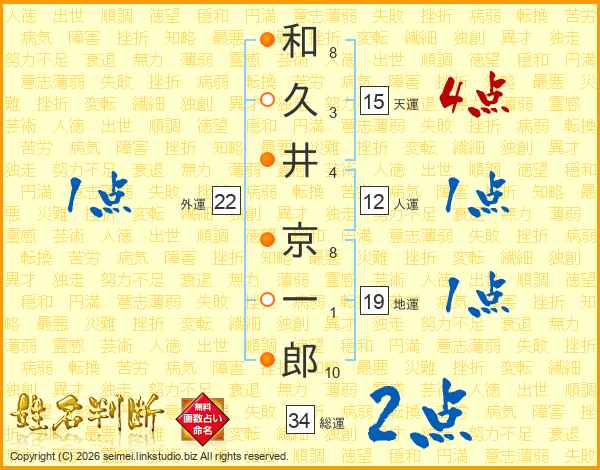 和(8画)久(3画)井(4画) 京(8画)一(1画)郎(10画)