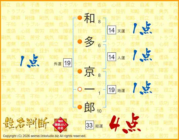和(8画)多(6画) 京(8画)一(1画)郎(10画)