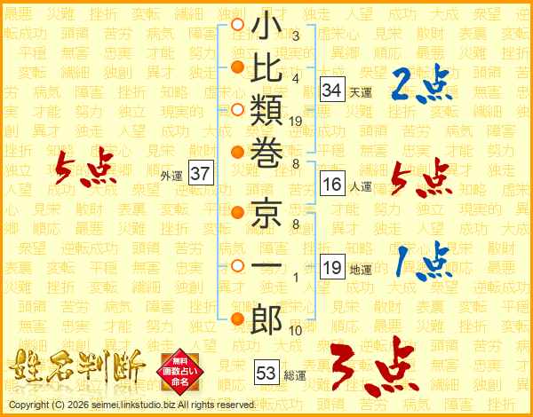 小比類巻京一郎さんの総運は53画の3点!