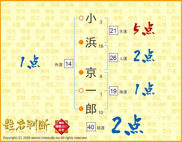 小浜京一郎さんの総運は40画の2点!