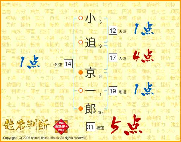 小迫京一郎さんの総運は31画の5点!