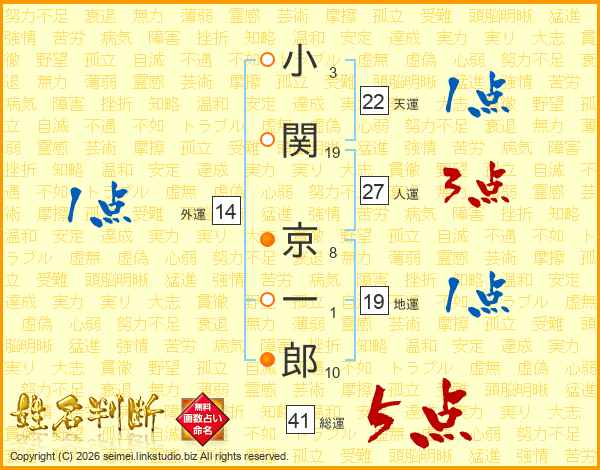 小関京一郎さんの総運は41画の5点!