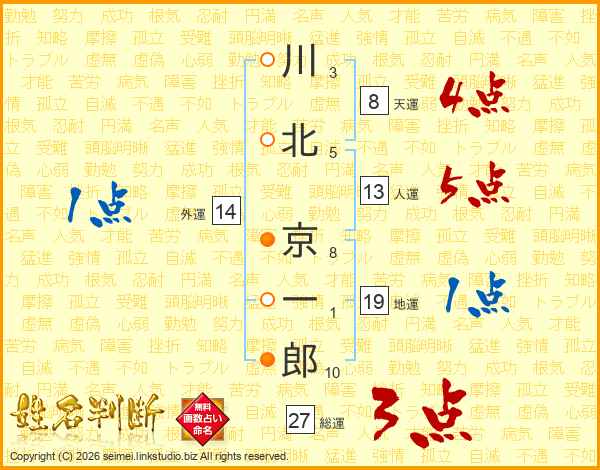 川北京一郎さんの総運は27画の3点!