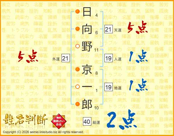 日向野京一郎さんの外運は21画の5点!