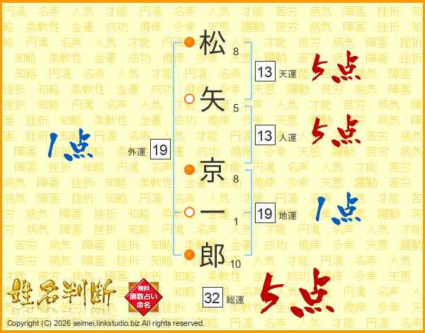 松矢京一郎さんの天運は13画の5点!