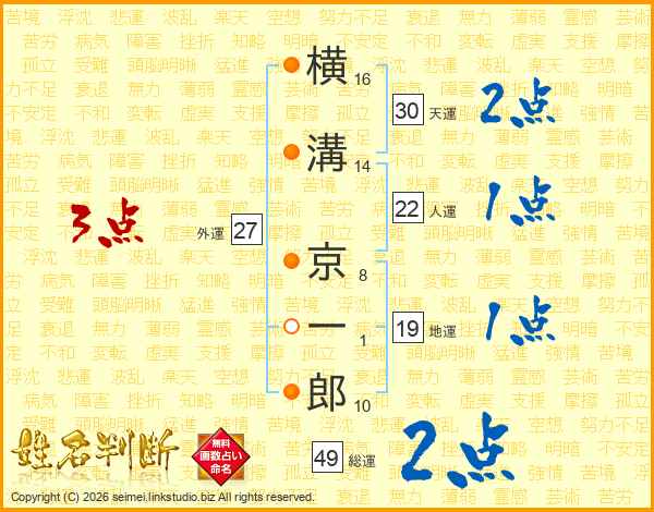 横溝京一郎さんの人運は22画の1点!