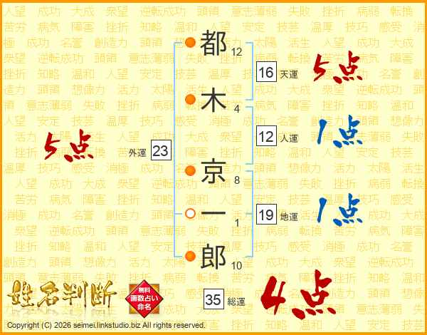 都木京一郎さんの総運は35画の4点!