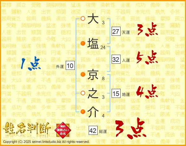 大塩京之介さんの総運は42画の3点!