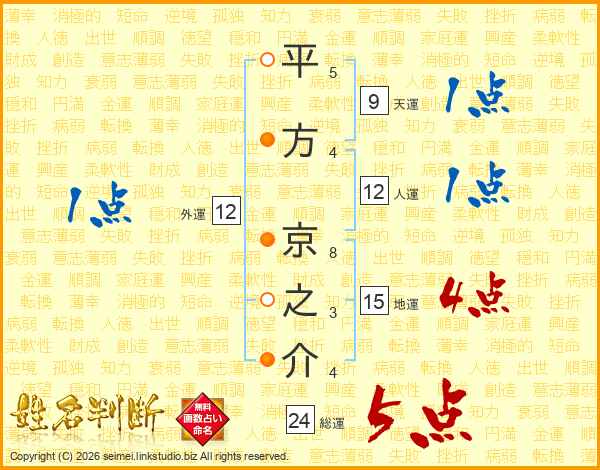 平方京之介さんの総運は24画の5点!