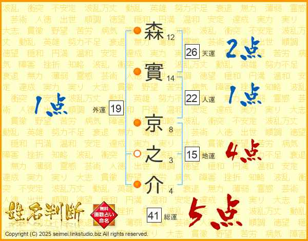 森(12画)實(14画) 京(8画)之(3画)介(4画)