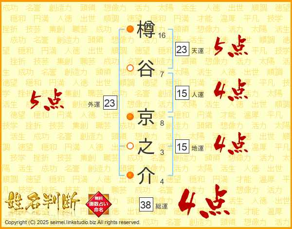 樽(16画)谷(7画) 京(8画)之(3画)介(4画)