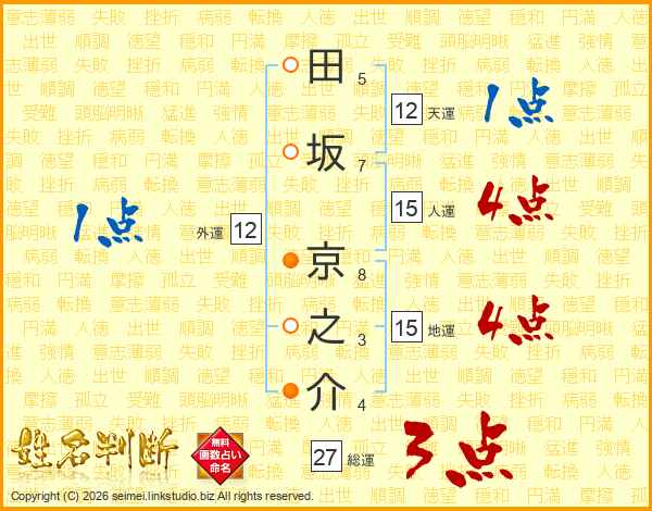 田(5画)坂(7画) 京(8画)之(3画)介(4画)
