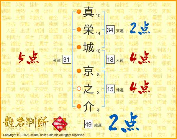 真(10画)栄(14画)城(10画) 京(8画)之(3画)介(4画)