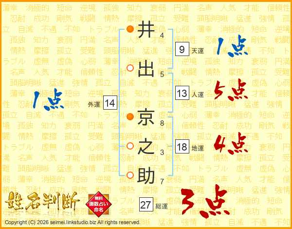 井(4画)出(5画) 京(8画)之(3画)助(7画)