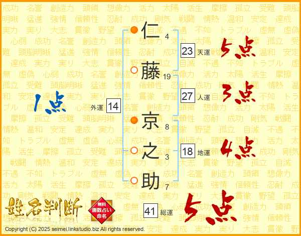 仁(4画)藤(19画) 京(8画)之(3画)助(7画)