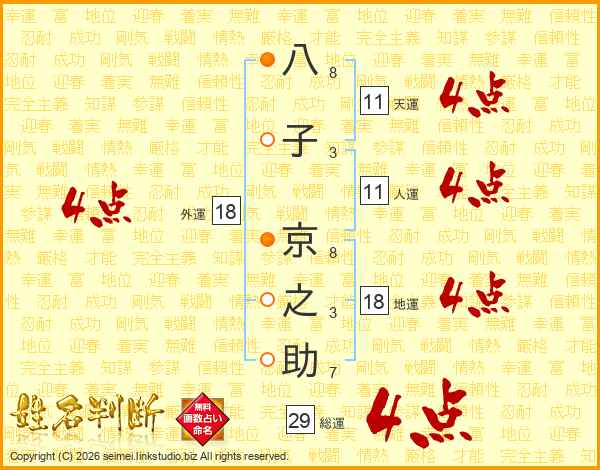 八子京之助さんの総運は29画の4点!