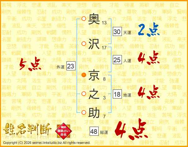 奥沢京之助さんの総運は48画の4点!