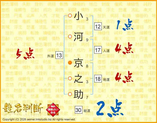 小(3画)河(9画) 京(8画)之(3画)助(7画)
