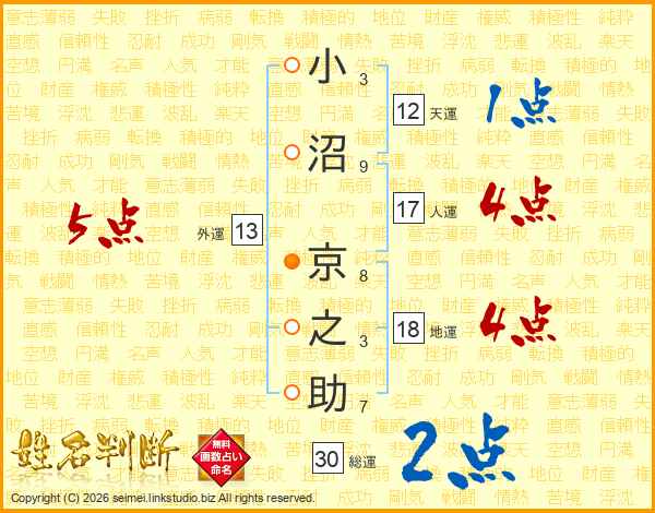小沼京之助さんの総運は30画の2点!