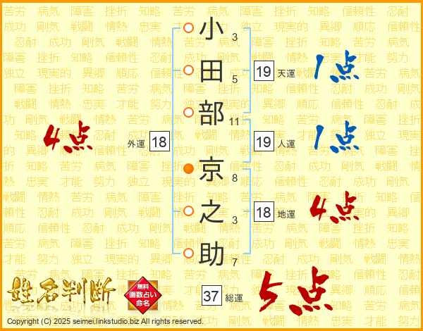 小田部京之助さんの総運は37画の5点!