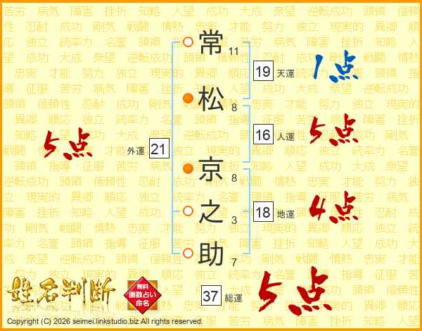 常(11画)松(8画) 京(8画)之(3画)助(7画)