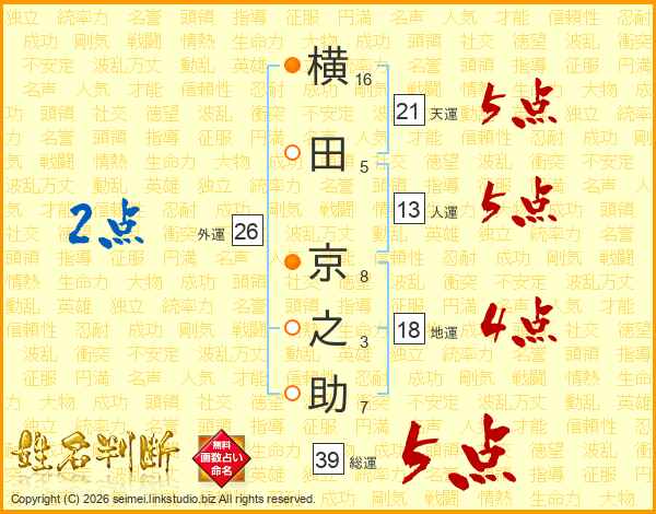 横田京之助さんの総運は39画の5点!