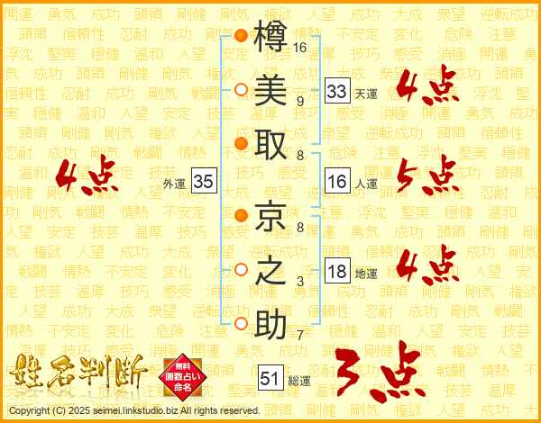 樽(16画)美(9画)取(8画) 京(8画)之(3画)助(7画)