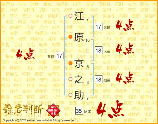 江原京之助さんの総運は35画の4点!