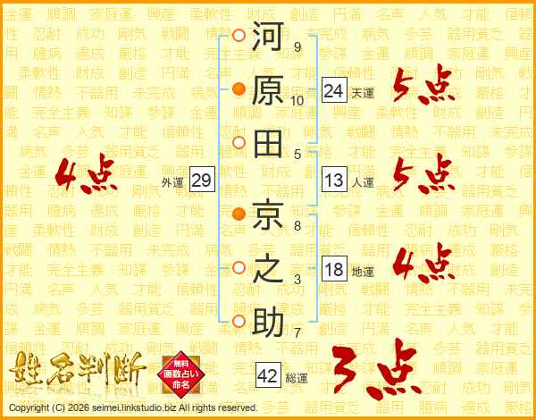 河原田京之助さんの天運は24画の5点!