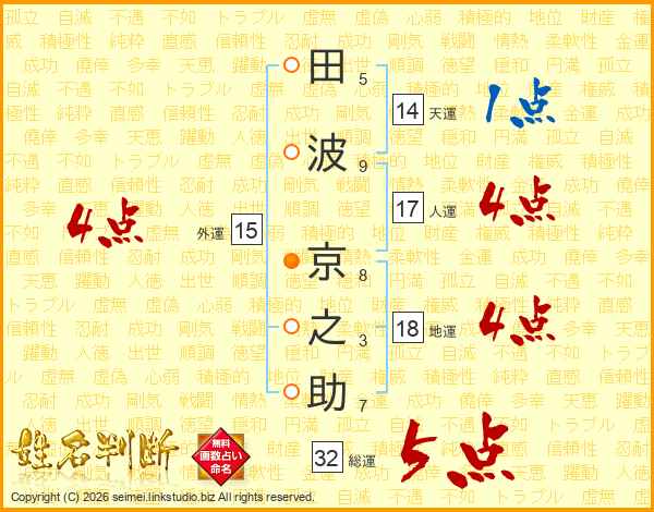 田波京之助さんの総運は32画の5点!
