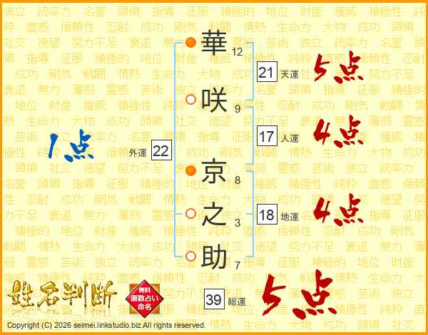 華(12画)咲(9画) 京(8画)之(3画)助(7画)