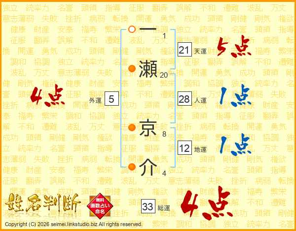 一瀬京介さんの総運は33画の4点!