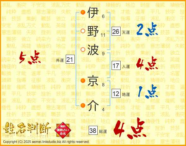 伊野波京介さんの総運は38画の4点!
